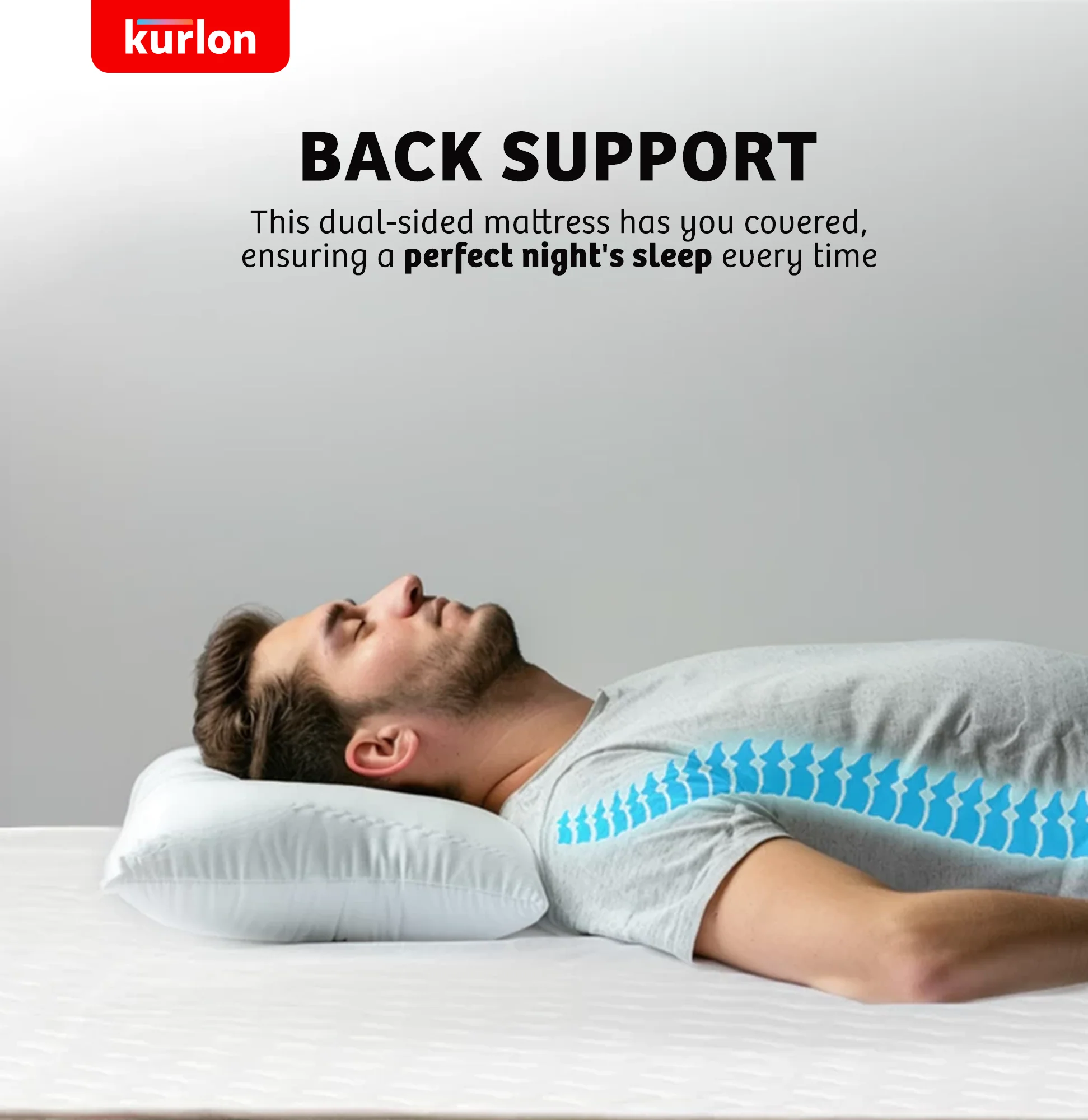 Kurlon’s DuoRest Mattress is designed to cater to your ever-changing comfort needs. With a unique dual-sided construction, this mattress offers two distinct sleep surfaces- a firm side for superior support and a plush memory foam side for unparalleled comfort